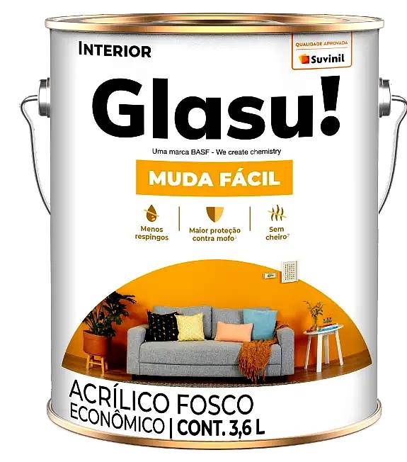TINTA ACRILICA FOSCO MUDA FACIL 3,6L PEROLA LATA - GLASU